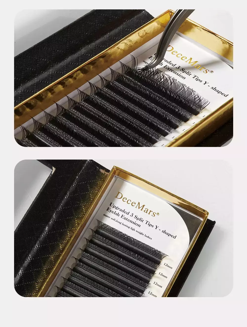Aplicação Prática: Os cílios em forma de Y facilitam a aplicação, ideal para profissionais ou uso em casa. Cada “Y” possui três pontas que se encaixam para volume balanceado e colagem segura.